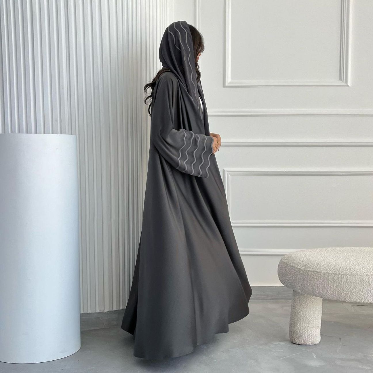 Arab Dubai Turkey Exquisite Embroidery Embroidery Coat With Headscarf Two Pieces