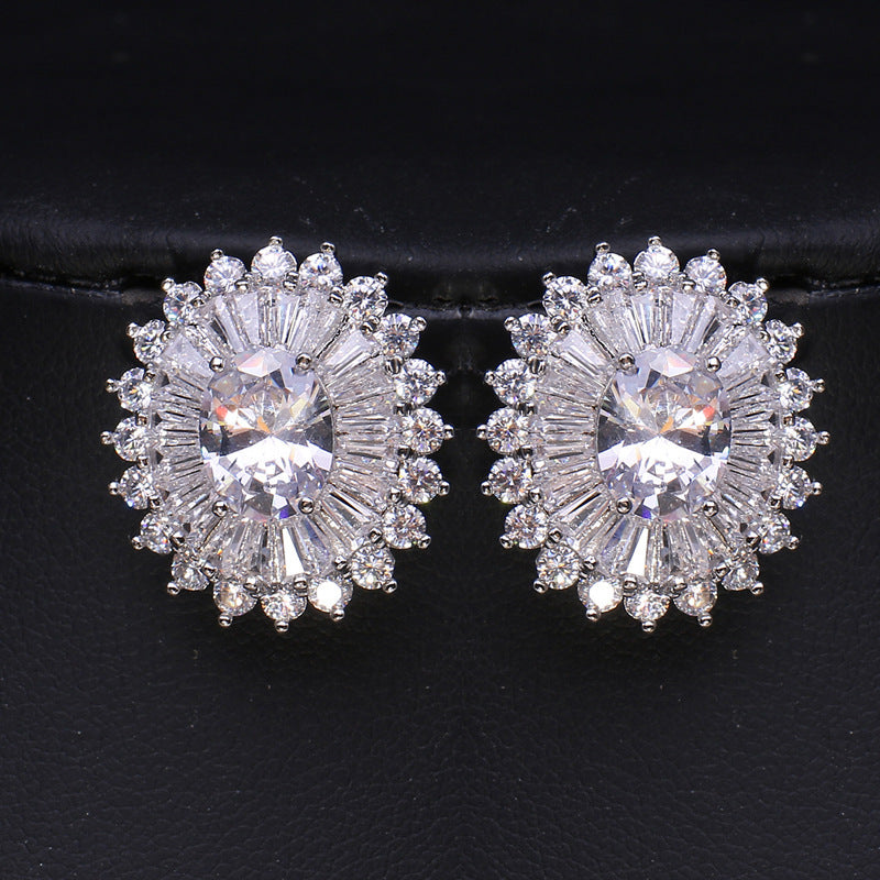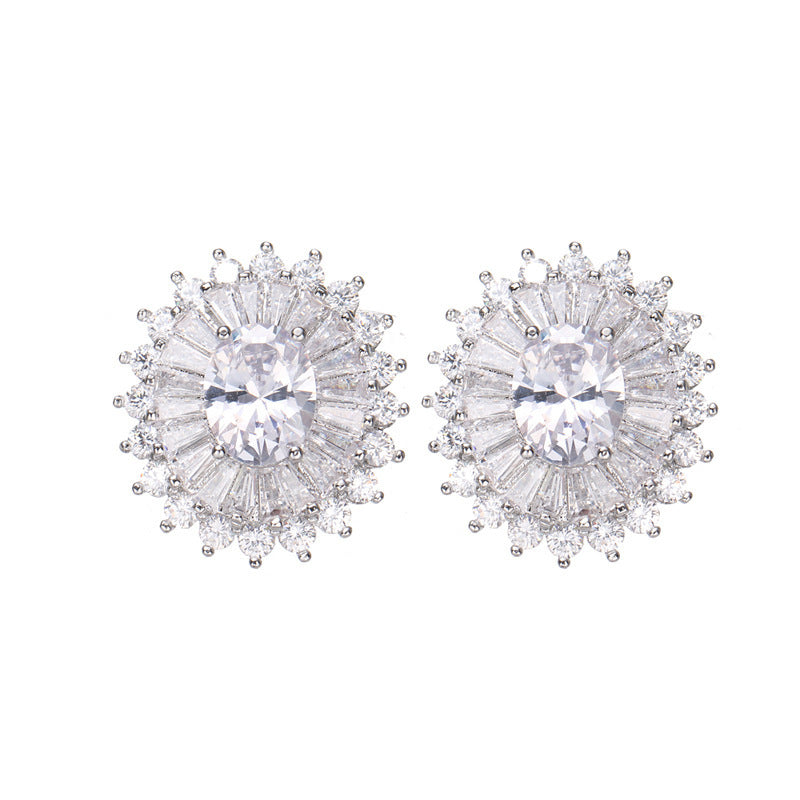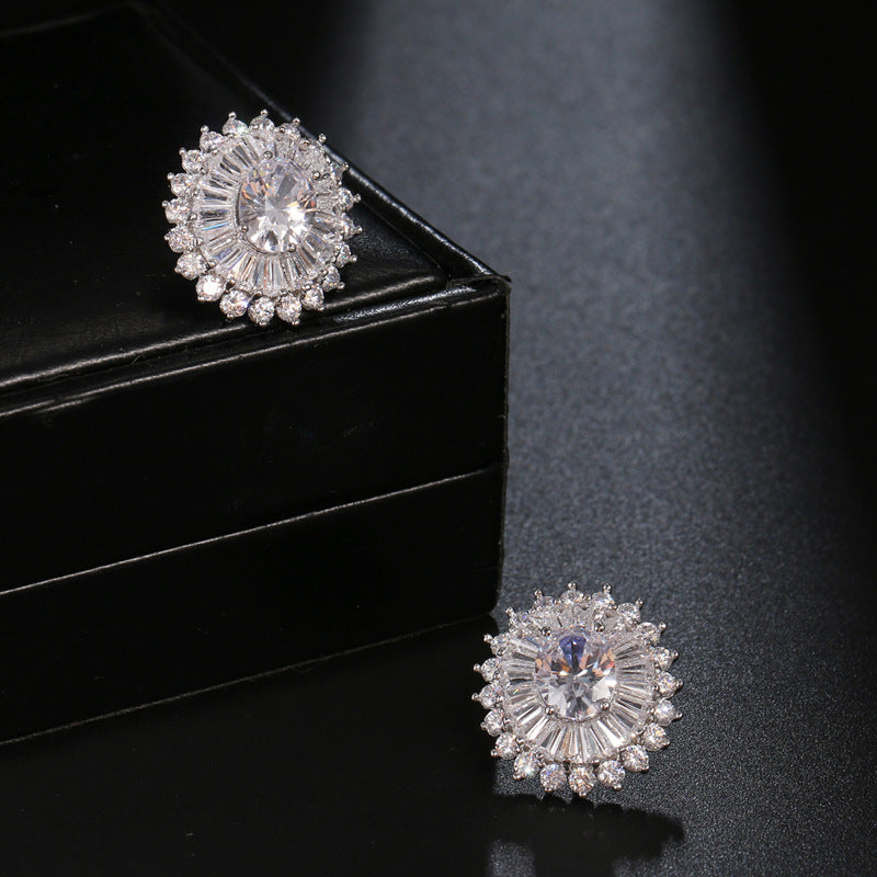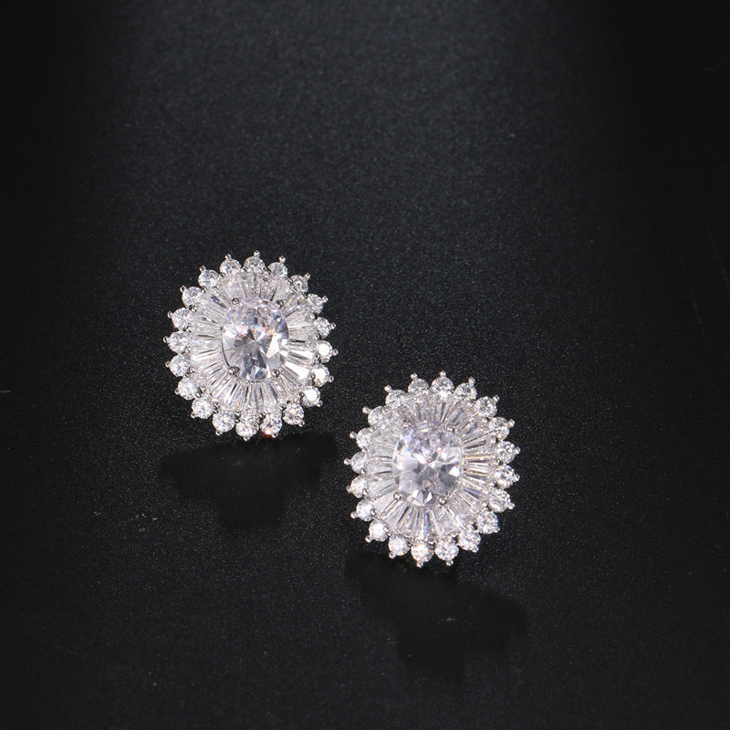 Huitan Eternity Cubic Zirconia Flower Stud Earrings For Women High Quality Wedding