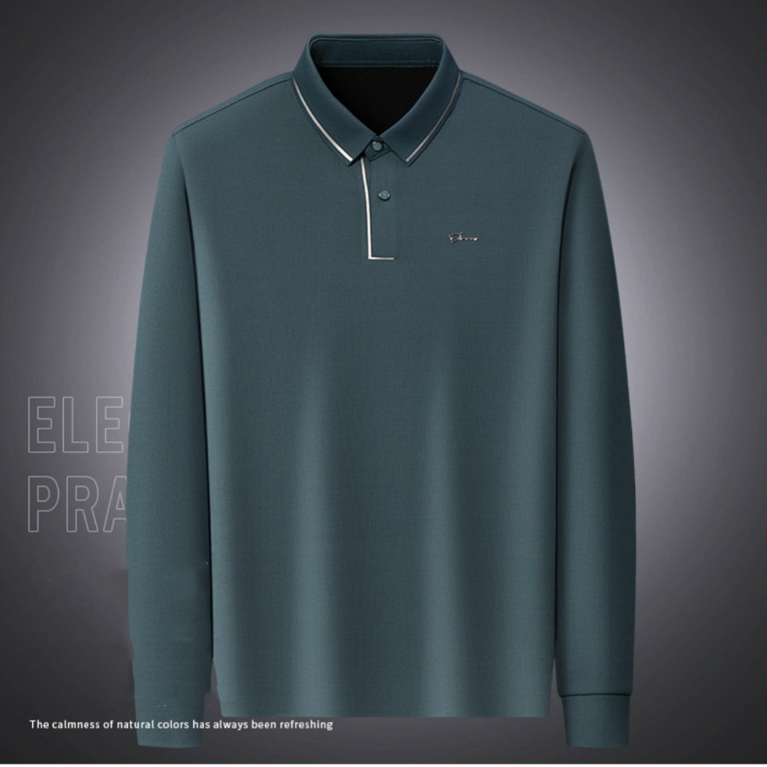 Long Sleeve T-shirt Men's Lapel Stretch Keep Warm Middle-aged Shirt Men