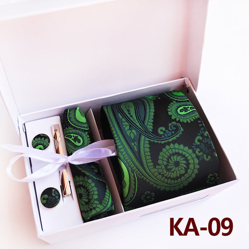 Tie *1, square towel *1, cuff link *1, tie clip *1, white gift box *1, gift bag *1.