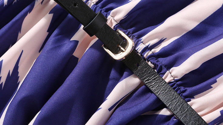 Color: blue (serrated shape printed elastic waist) belt
