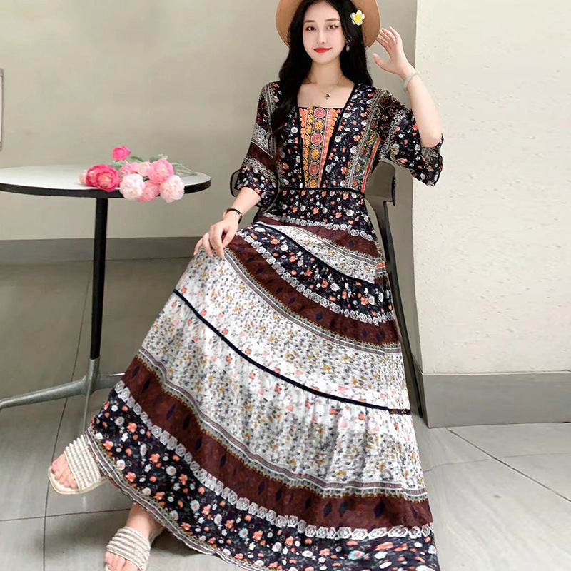 Summer Vintage Cotton Silk Ethnic Style Embroidered Dress Women