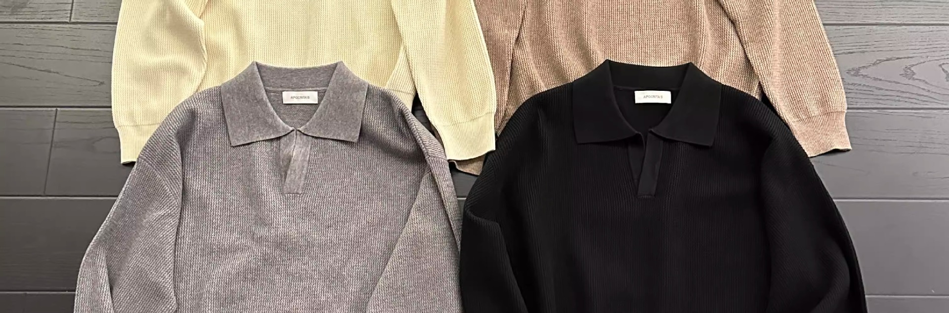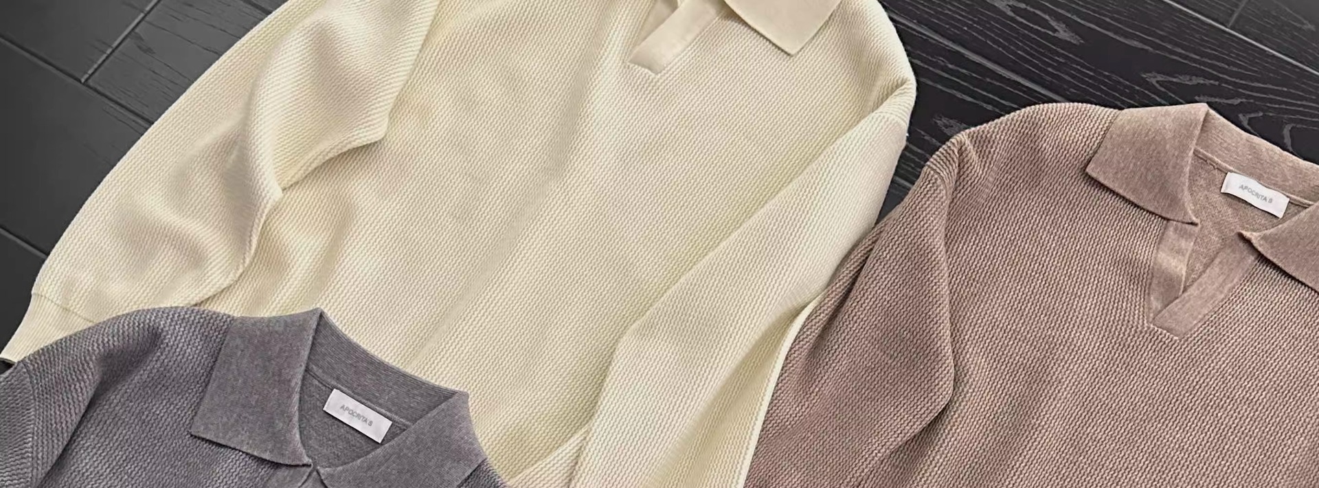 V-neck knit pullover sweater, heavyweight retro men's POLO long-sleeved American casual autumn style, thickened.